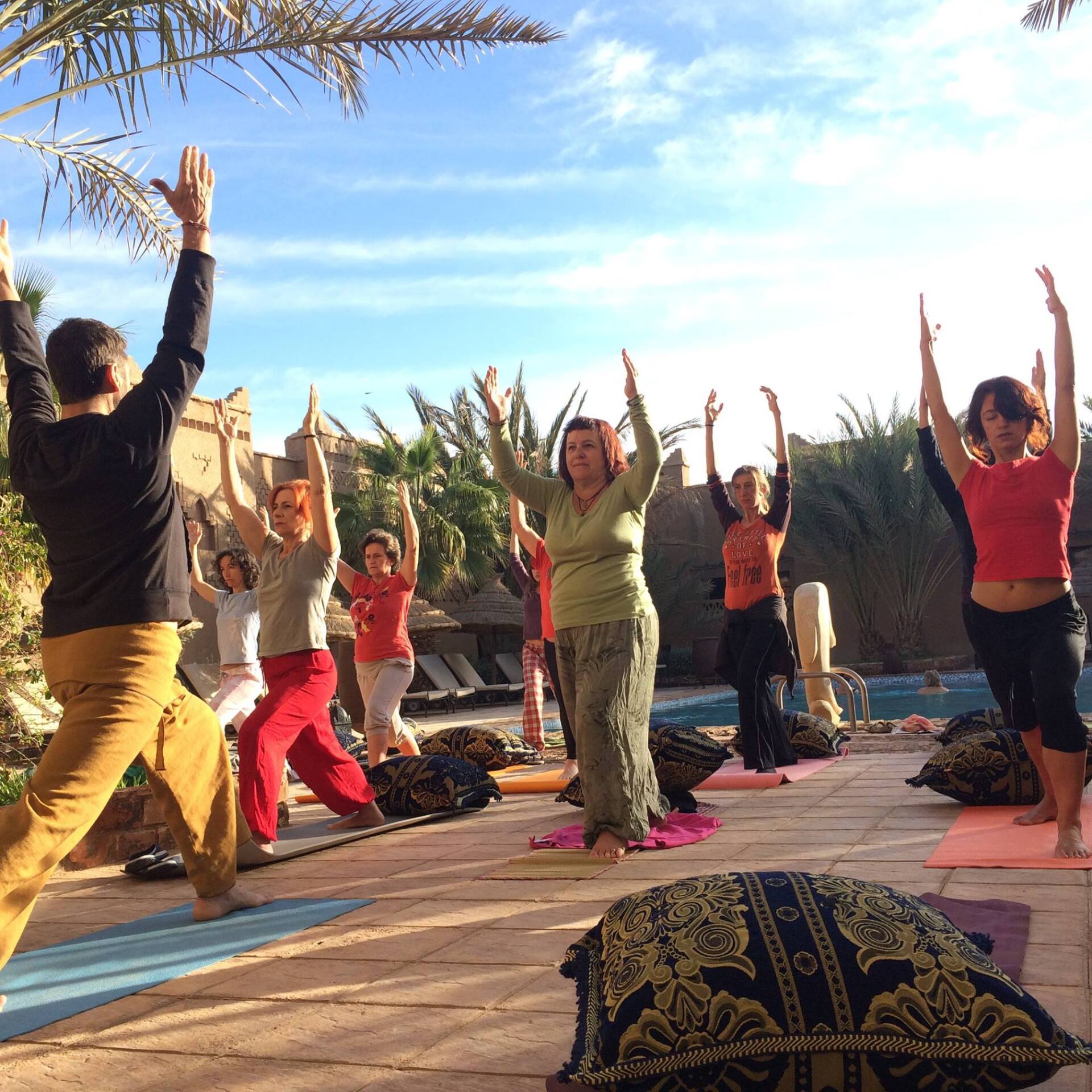 A la mañana nos preparamos para nuestra jornada de viaje con una práctica de yoga guiada por profesores titulados con amplia experiencia.